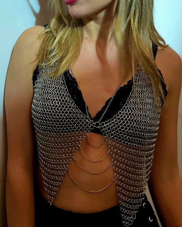 ⛓️💥Hecho a mano con argollas de níquel tejidas entre si, se regula en cuello y espalda